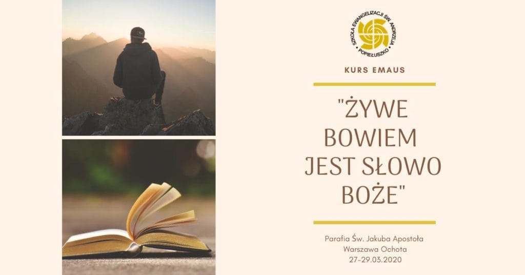 Jest to kurs o Słowie Bożym. A jednocześnie drugim z kolei kursem w programie Szkół Ewangelizacji Świętego Andrzeja, do których należy nasza SNE. Kurs odbywać się w będzie w formie dochodzonej w dniach 27-29 marca 2020 r. w parafii św. Jakuba Ap. w Warszawie, przy ul. Grójeckiej 38. Więcej informacji i zapisy na stronie snewarszawa.pl/emaus.