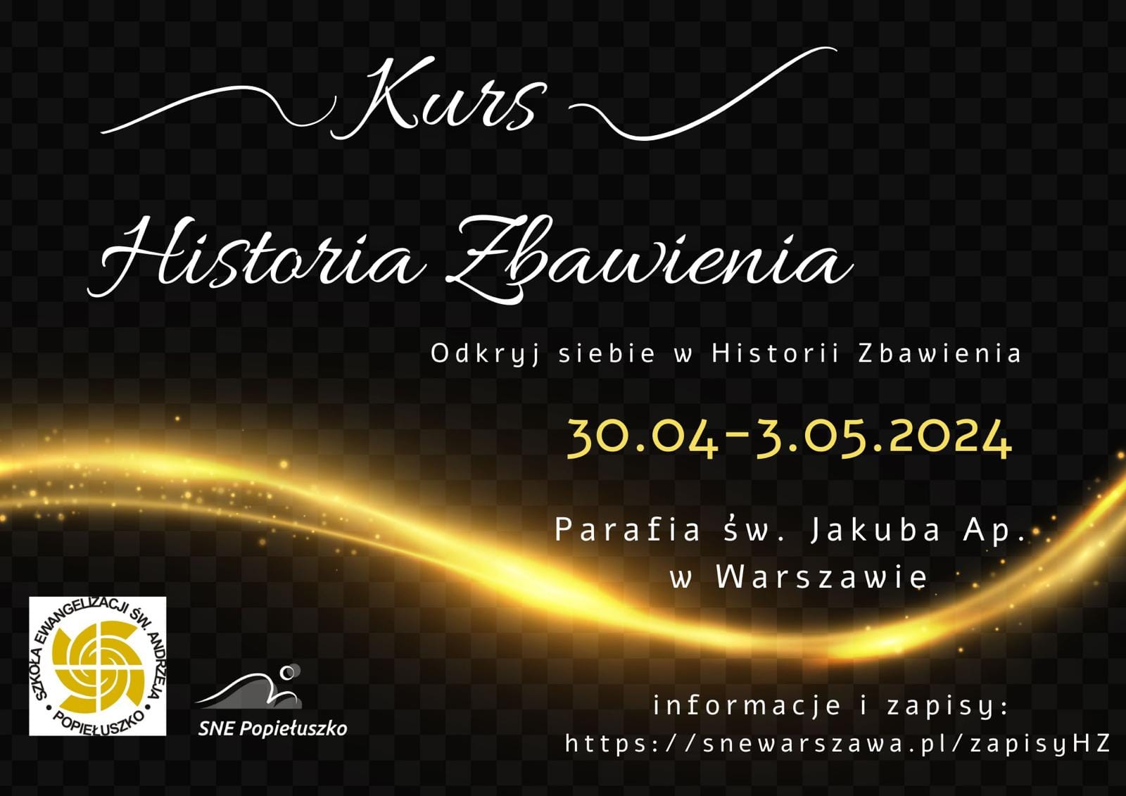 Z radością informujemy, że organizujemy kurs „Historia Zbawienia”. To rekolekcje biblijne dla osób które przeżyły już kilka kursów SESA i są we wspólnocie. Kurs jako dochodzony odbędzie się w dniach 30 kwietnia – 3 maja 2024 r. w par. św. Jakuba Ap. w Warszawie. Więcej informacji oraz link do zapisów pod adresem: https://snewarszawa.pl/historiazbawienia.